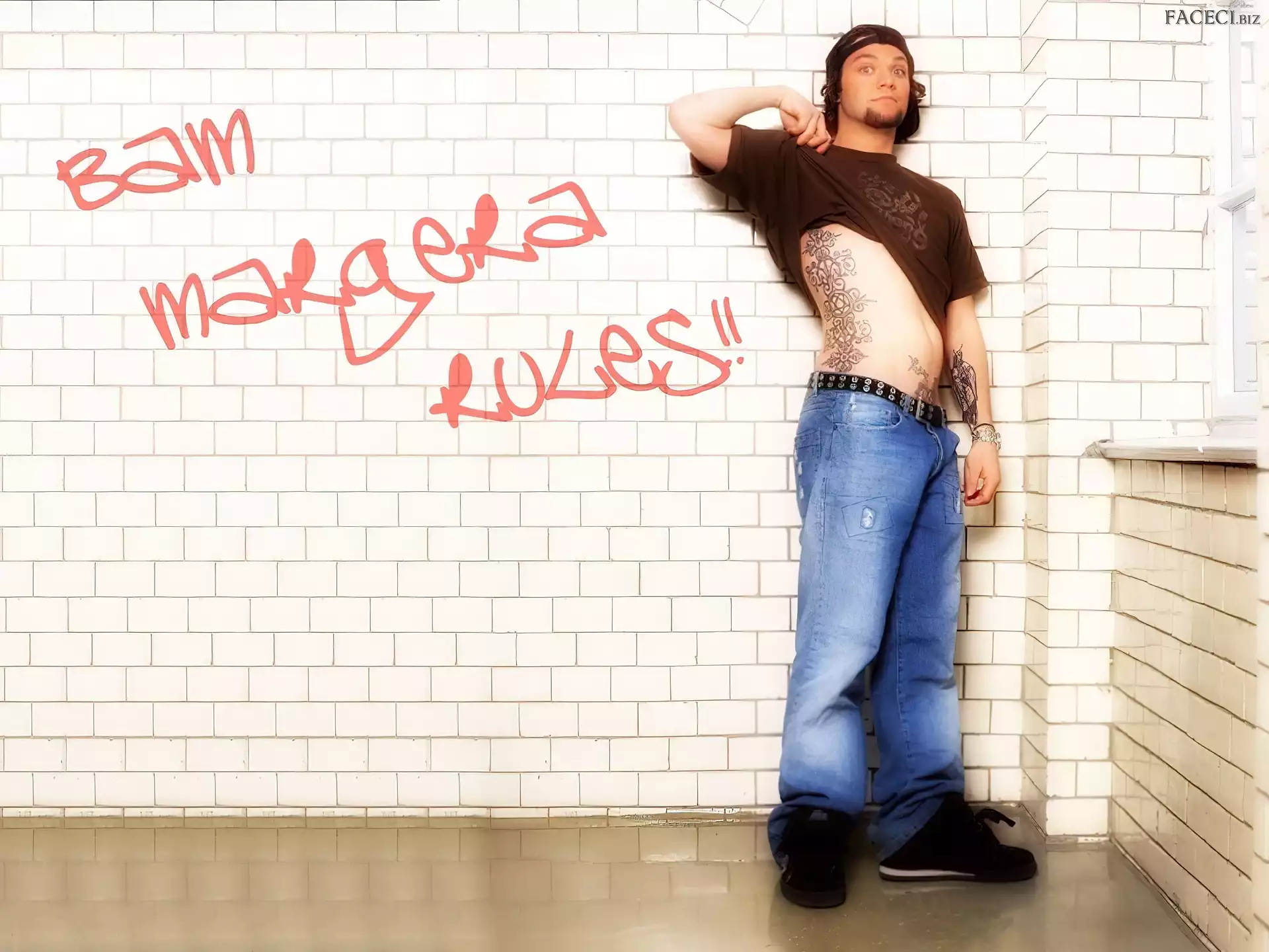 kurtka, Bam Margera, rozpięta zegarek, Bam Margera, deskorolka okulary, Bam Margera, twarze t-shirt, Bam Margera, brązowy okulary, Bam Margera, butelka włosy, Bam Margera, ciemne